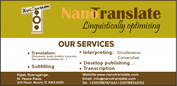 NanoTranslate Rwanda Ltd is a full-service interpretation, translation and Event Management home committed to delivering consistently quality at competitive prices. Our services are not limited to only Editing, Proofreading, Localization, Subtitling, Captioning, Transcription, Interpreting BUT ALSO managing your event from the beginning up to its end.