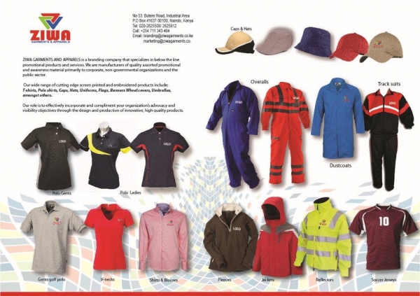 High quality branded garments supplied by Ziwa Garments and Apparel Kenya’s top Garment Manufacturer and Garment Factory located in Nairobi.